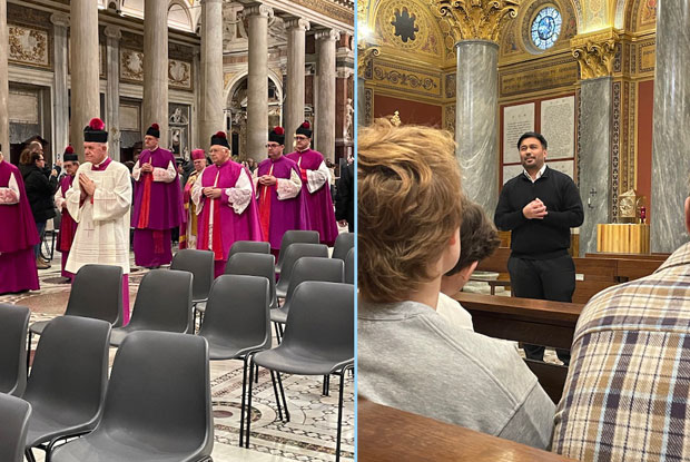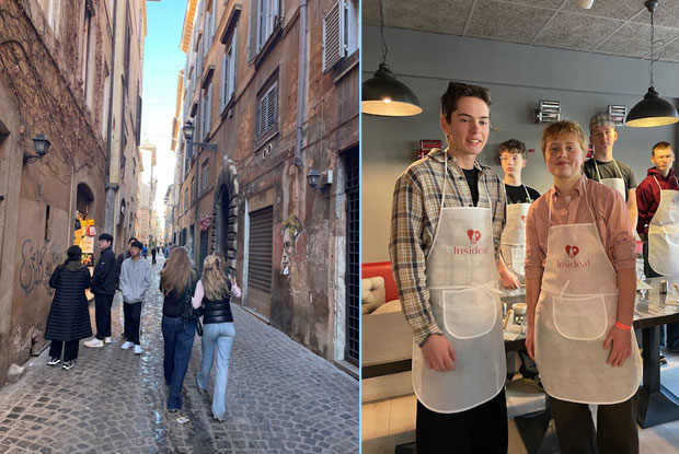 Vores sidste dage i Rom bød blandt på madlavningskursus med den italienske kok Carlo, hvor eleverne lærte at lave hjemmelavet pasta samt tiramisu. Vi var også heldige i år med en meget fin audiens hos den nye Pave Leo, samt besøg i The Venerable English College, hvor Steven, den norske præstestuderende, lavede en flot og meget personlig rundvisning for os.