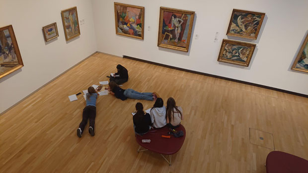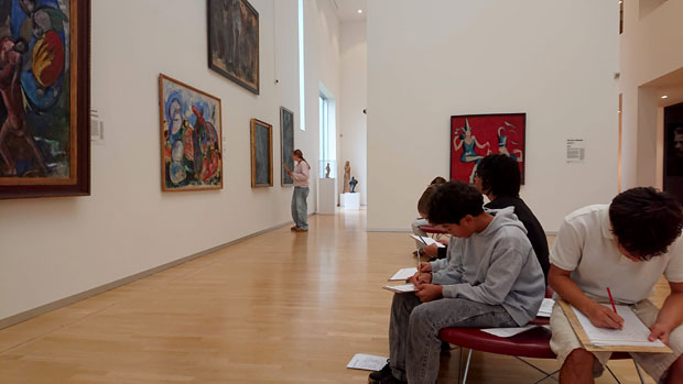 Billedkunst valgfag 7. klasse have fagdag på Statens Museum for Kunst. Her skulle de øve sig i billedanalyse, billedfortolkning, tage fotos og tegne efter billederne. En billedanalyse giver mulighed for, at man kan fordybe sig i et billede, og ofte vil billedet dermed afsløre en masse ting, som man umiddelbart ikke ville lægge mærke til. Billedkunst valgfag er et toårigt forløb, som afsluttes med eksamen i 8. klasse. Det var Peter og Kim som underviste eleverne.