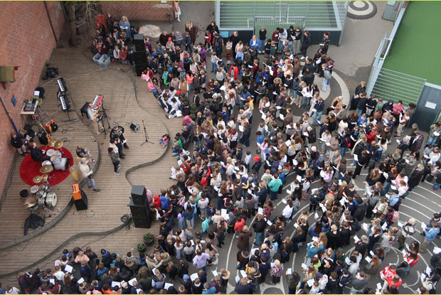 Vores værdigrundlagsdag, Sankt Josephs Dag, blev en stor succes. Morgenen begyndte med morgenbøn, musik og dans i skolegården og derefter arbejdede klasserne med emner knyttet til værdigrundlagsdagens tema: “Mod til at følge dit hjerte og at gøre det rigtige”. Kl. 12 kom dagens overraskelse, en is-bil i gården! Kl. 15 kom forældrene, og besøgte eleverne udstillinger og værksteder. Der var bl.a. udstillinger om Joseph, folketingsvalg, 9. klassernes galleri i billedkunst og Cafe Joseph i Hallen. Mange forældre var kommet med kage, og de blev solgt til fordel for Caritas. På et tidspunkt var cafeen så lang, at den gik over hele skolegården, helt over til boden med de populære ISJ-trøjer. Vi sluttede af kl. 17 med gudstjeneste og en lang menneskekæde i gården. Tak for en festlig dag til alle!