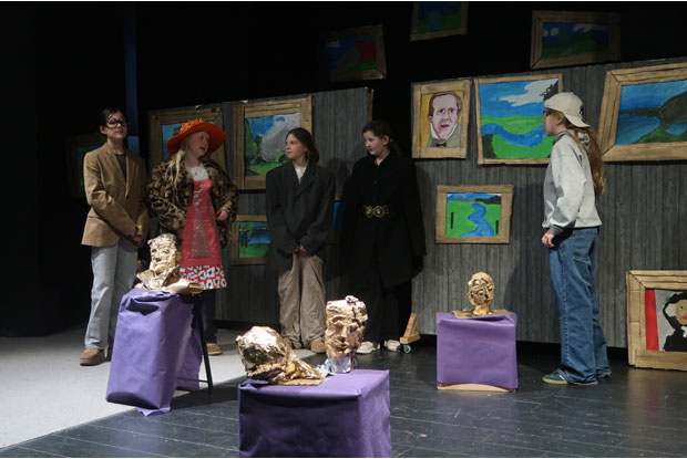 Femte årgang har i morgen fredag præmiere på et skuespil, der hedder Gyldne Tider. Det handler om Danmarks guldalder og eleverne har lavet hele scenografien med guldaldermalerier. I 8. og 9 klasserne arbejder eleverne med projektopgaver. 8. klasserne arbejder blandet og har emnet Kontraster. De har fremlæggelser fredag.