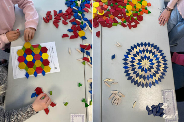I dag har vi i matematik i 1a arbejdet med mønstre og det kom der de her fine billeder ud af.