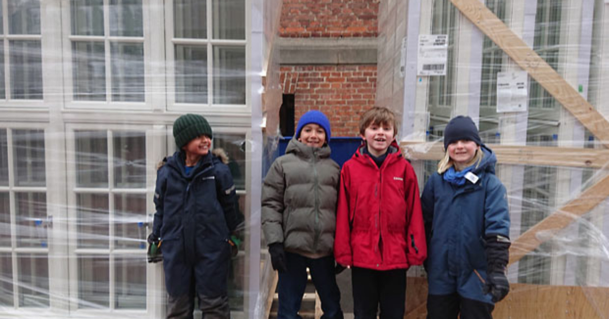 Mange klasselokaler har fået skiftet vinduer, og nu er flere på vej. Her er en ny sending, som skal sættes op mens eleverne er på vinterferie. Vores skole er en gammel flot bygning, så der bliver passet godt på den. De nye vinduer ligner derfor de gamle.