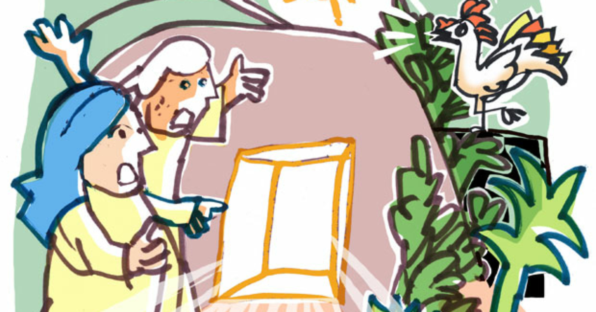 Tegning fra programmet til gudstjenesten: Kvinderne kommer til den tomme grav (Kim Broström)