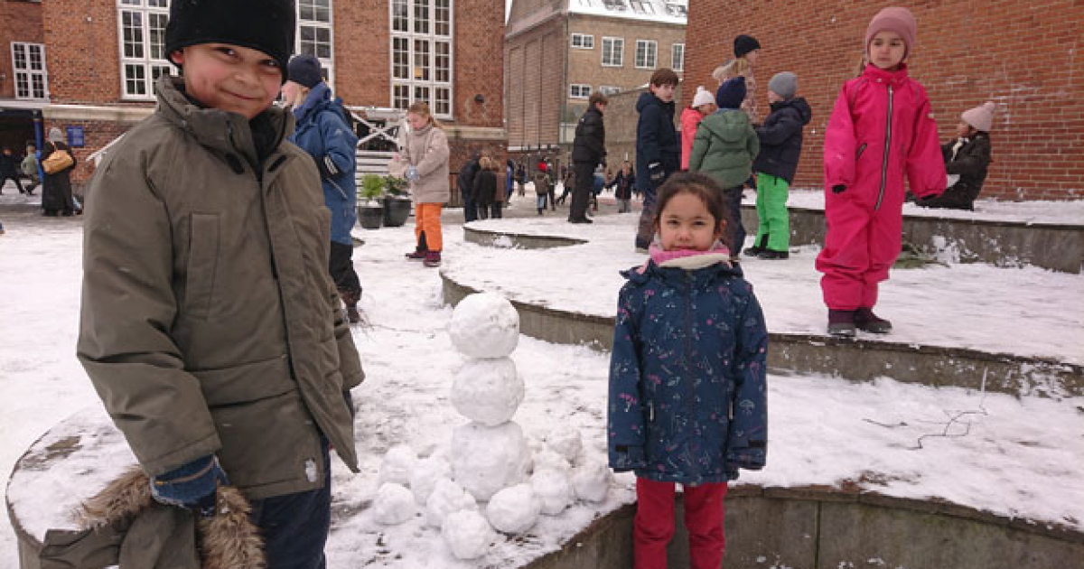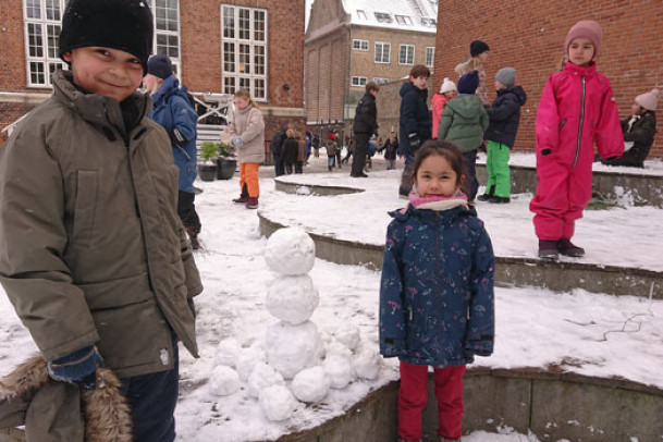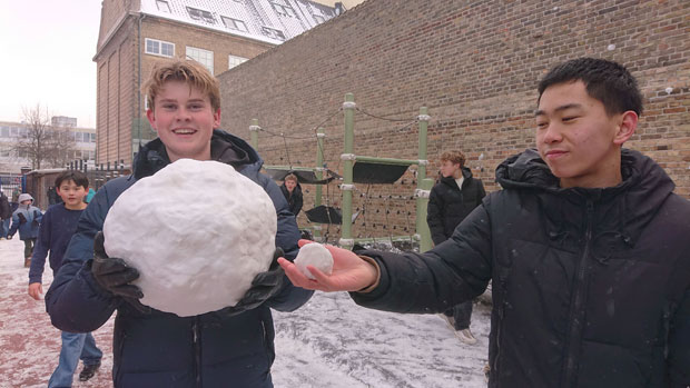 Til snevejr hører en god sneboldskamp. Tirsdag var der mulighed for at kaste med sne i en del af skolegården, mens gårdvagter, med fare for selv at blive ramt, hold øje med at det ikke gik for voldsomt til. Onsdag var sneen for hård, og al kamp blev forbudt. Men så fandt eleverne bare på andre ting i sneen. Nogle lavede figurer, andre gik i gang med at grave labyrinten fri…